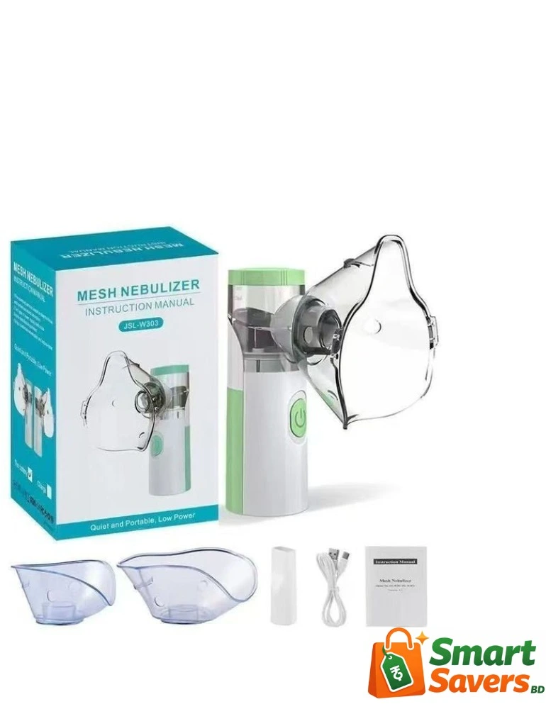 Mesh Nebulizer (Model: JSL-W303) ছোট, হালকা ও সহজে বহনযোগ্য। বাসা বা ভ্রমণে যেকোনো জায়গায় সহজে ব্যবহার করা যায়।